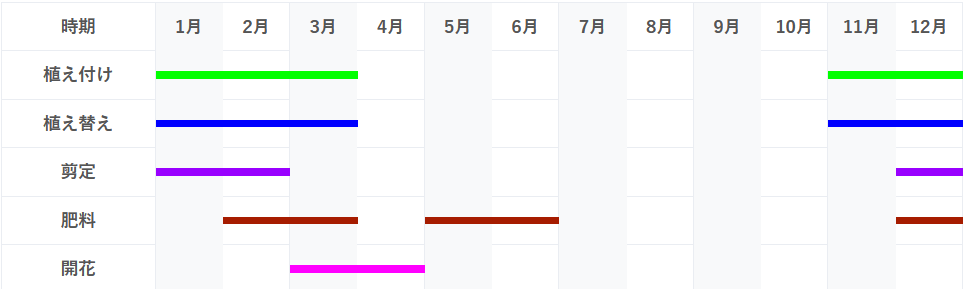 剪定:適期は12月から3月上旬です。成長期に強い剪定をすると長期間開花しなくなるので注意します。太枝を切ることがないように小さい時から樹形を整えるようにします。