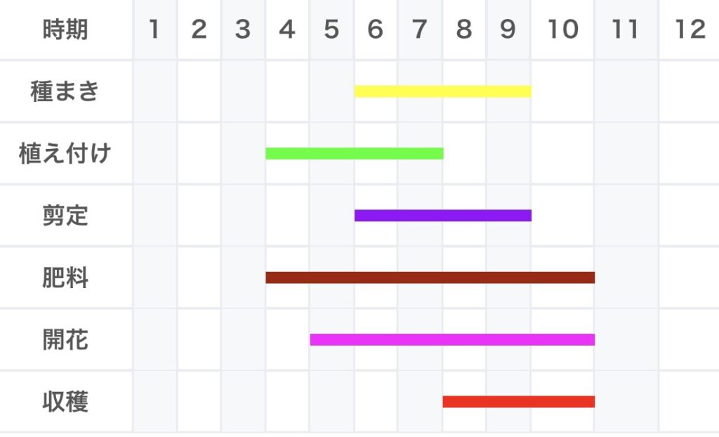 生育中に寒さがこないよう、春から夏の間に植え付けます。根詰まりを起こすと生育が止まるので、植え替えは早めに。
